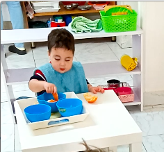 In La Casa, children are between 3-6 and would have a more developed hand movement, that is why the food preparation activities could be more advanced and stimulating from them.