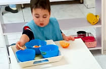 Peeling tangerine: Need to make a hole in the top of the clementine before we give it to the child to peel it. we need to also make sure that the skin loose and will allow the child to peel at ease, specially with this young age.